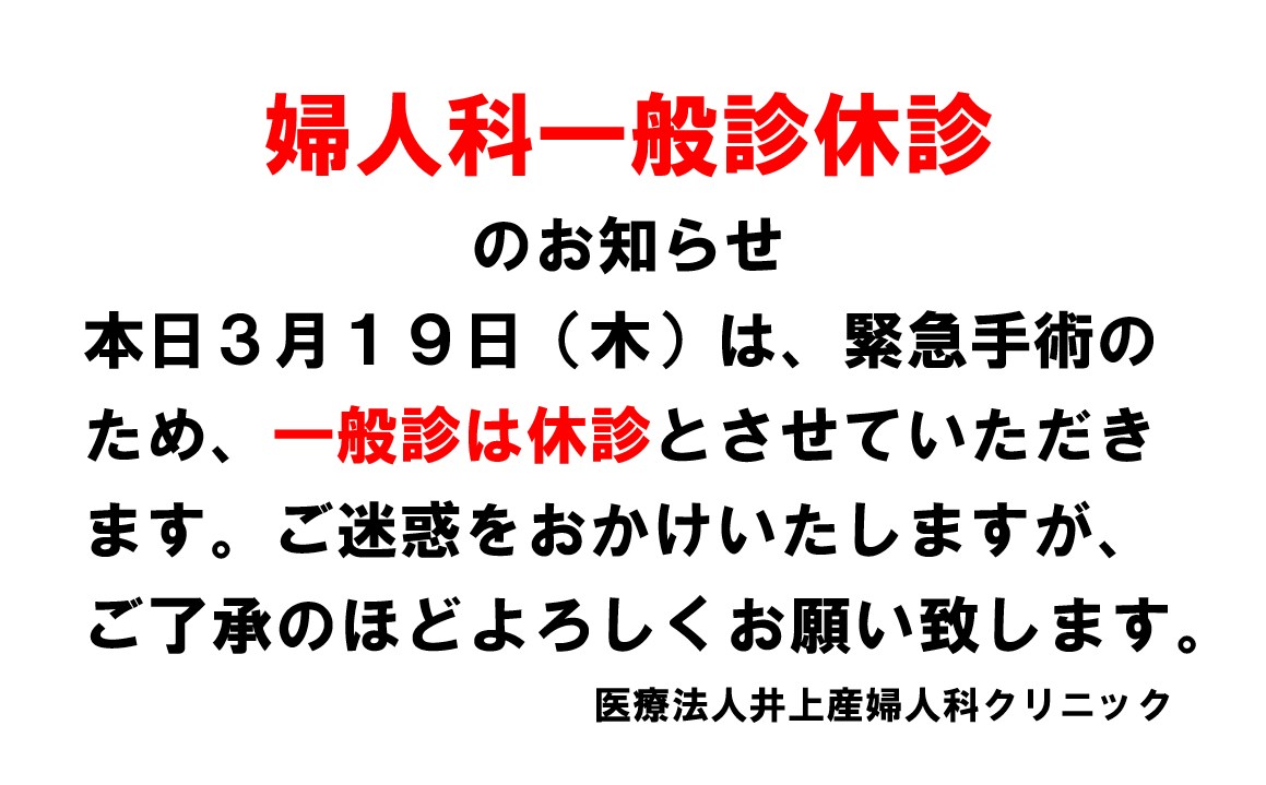 婦人科一般診休診のお知らせ