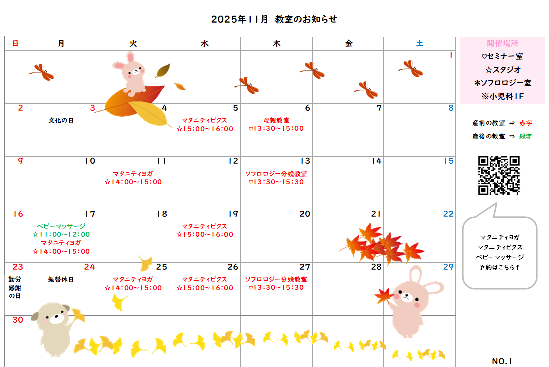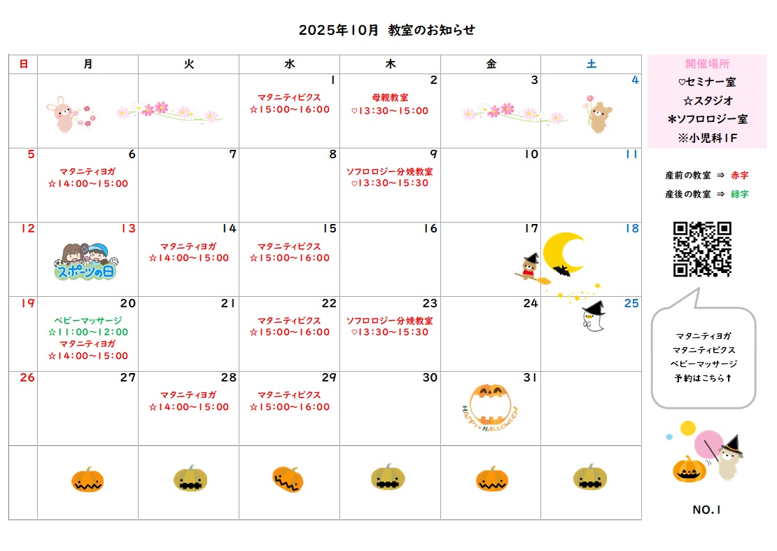 ※第1週の母親教室とマタニティビクスの日程に誤りがございました。